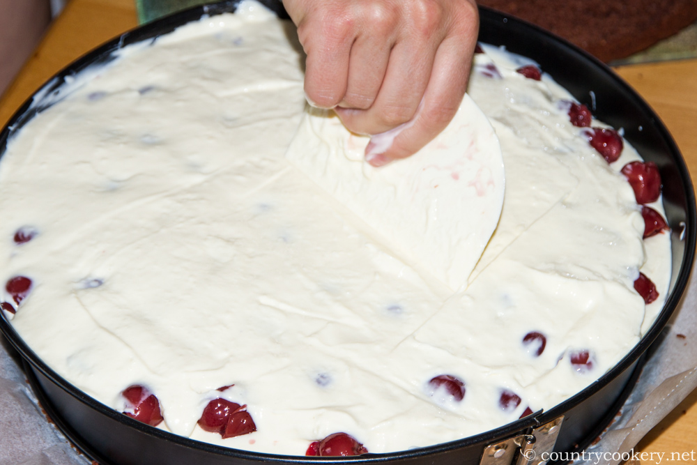 Light, fruity, happy. Perfect for hot summer days or if a simple cheesecake is not what you are looking for. It is a light combination of cheesecake and yogurt with cherries to add some fruity flavor in to it. You can also use some other fruits like mandarins, peaches or any kind of berries. It is really very easy.