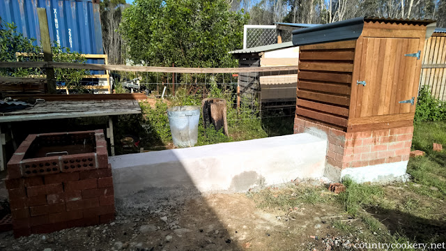 The fire place which you can see on the left is bigger than you would usually need for a smokehouse but we use it as a wood fired BBQ as well so it works for us very good both ways.